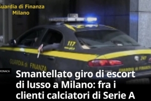米体:米兰警方捣毁性服务犯罪组织,其客户包括一些意甲球员